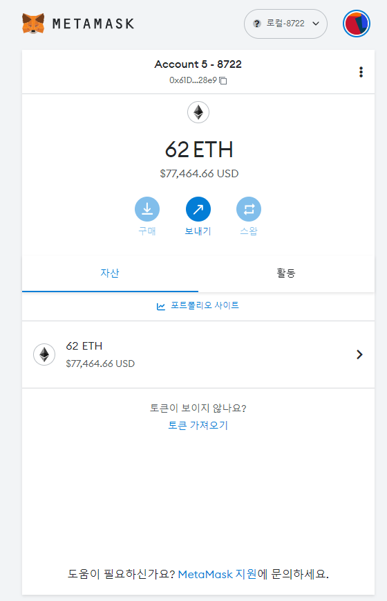 METAMASK 에서 계정을 가져오기