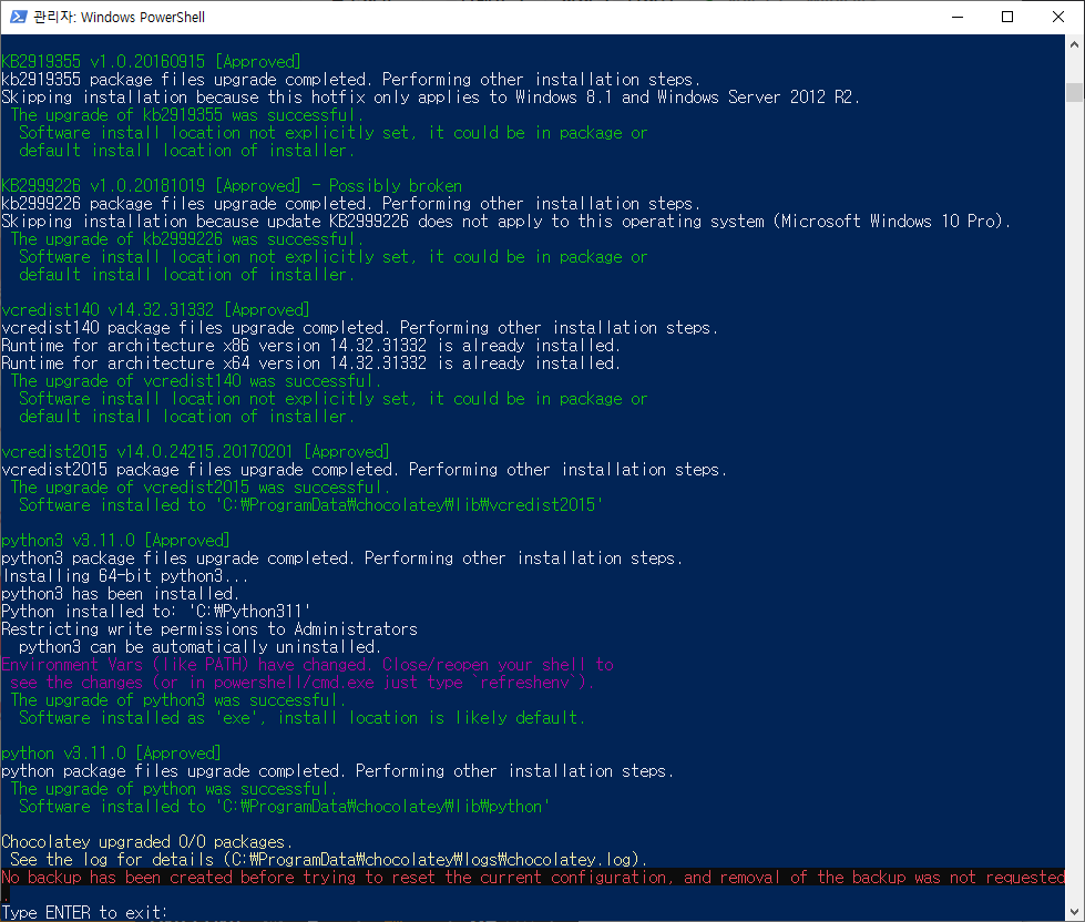 위 2개의 명령어로 버전이 설치버전과 동일하게 나오면 완료!!!